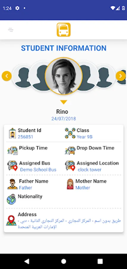 -Also an SMS will be sent to the parents in case the school bus is delayed e.g. stuck in traffic.