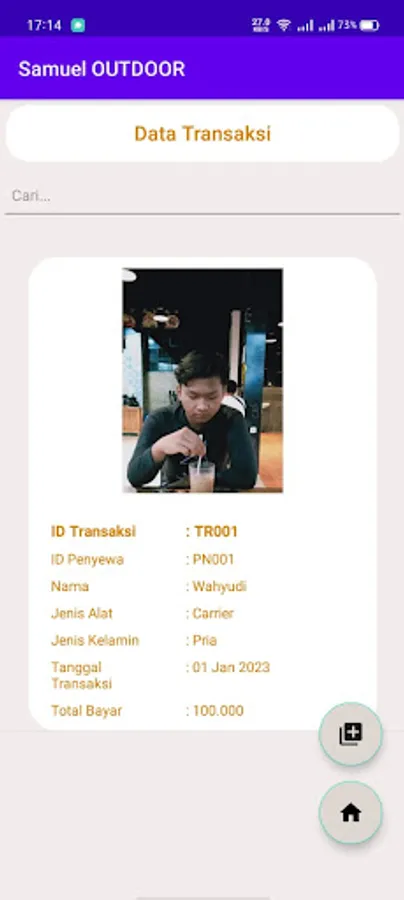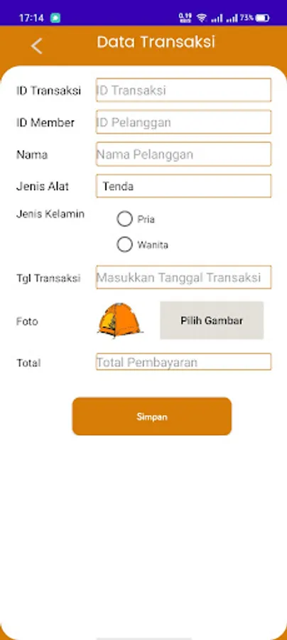 Application for adding outdoor equipment rental data and customers