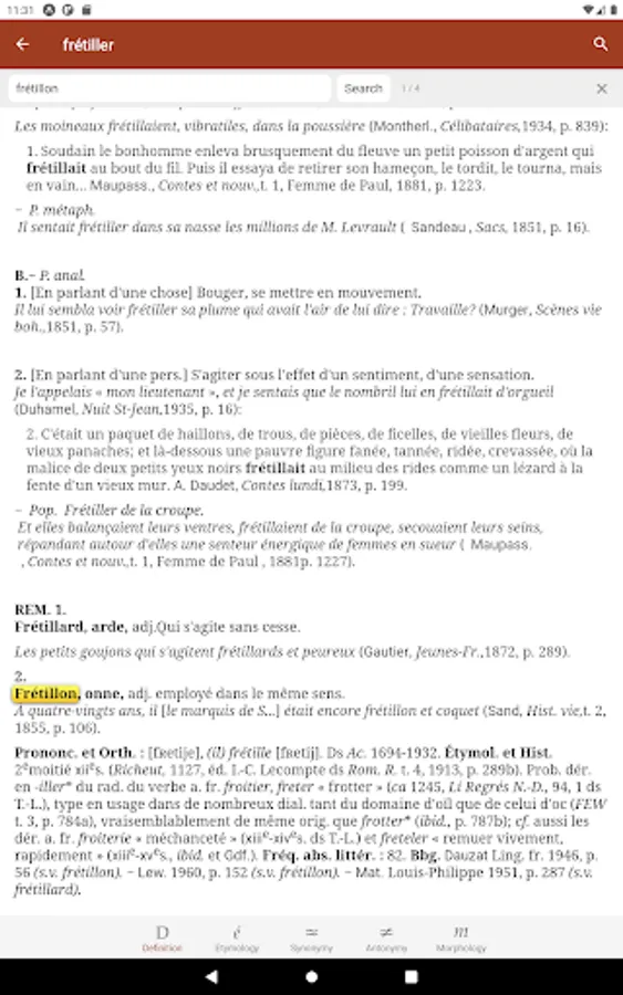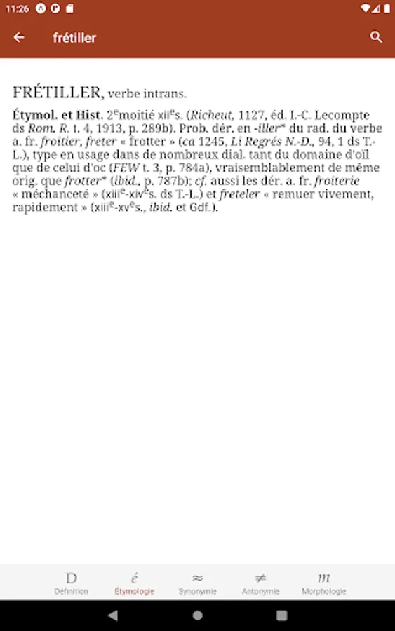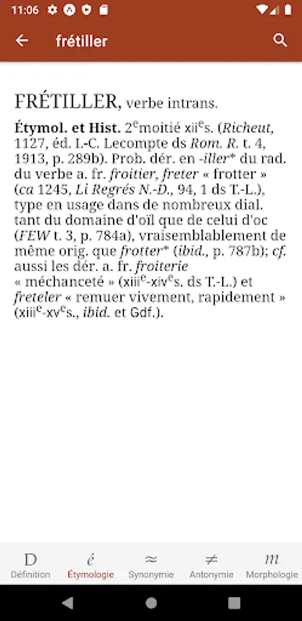 This application makes it easy to consult the online French dictionary TLFi from the CNRTL (“Centre National de Ressources Textuelles et Lexicales”). Consult the definition, etymology, synonymy or antonymy of a word. The TLFi (Trésor de la langue française) comes from a dictionary in sixteen paper volumes.