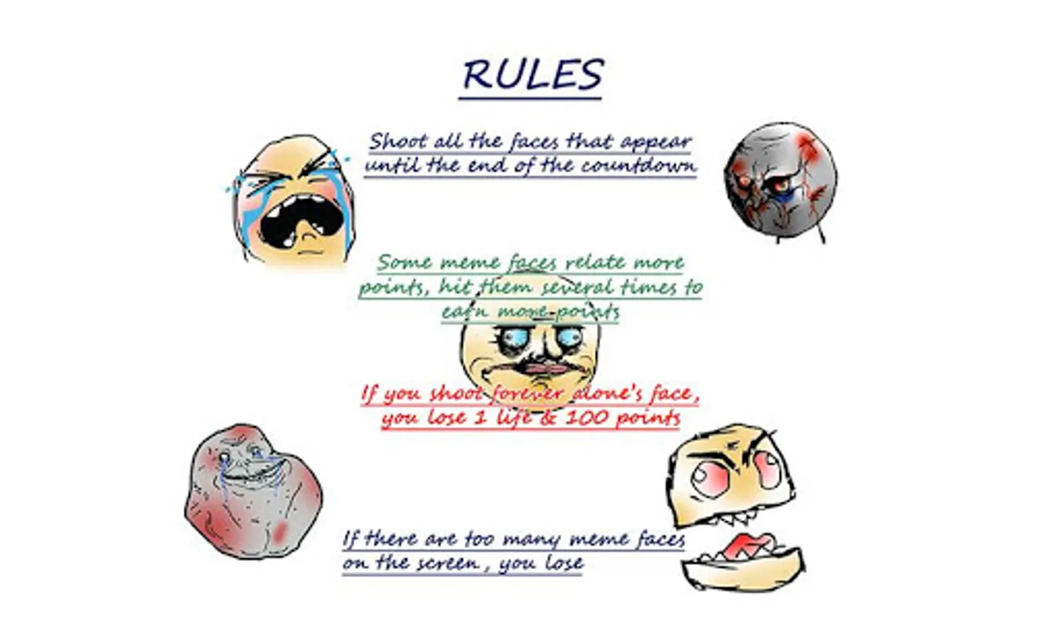 Shoot All Meme Faces that appear on the screen until the end of countdown