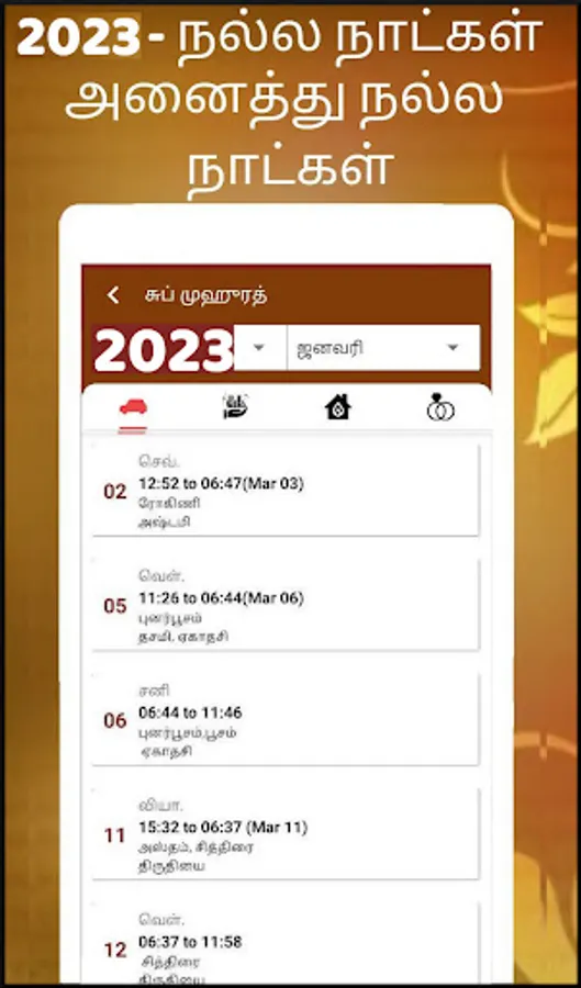 ● 2023 Shubh Muhuarat dates with precise tamil calendar muhuratham