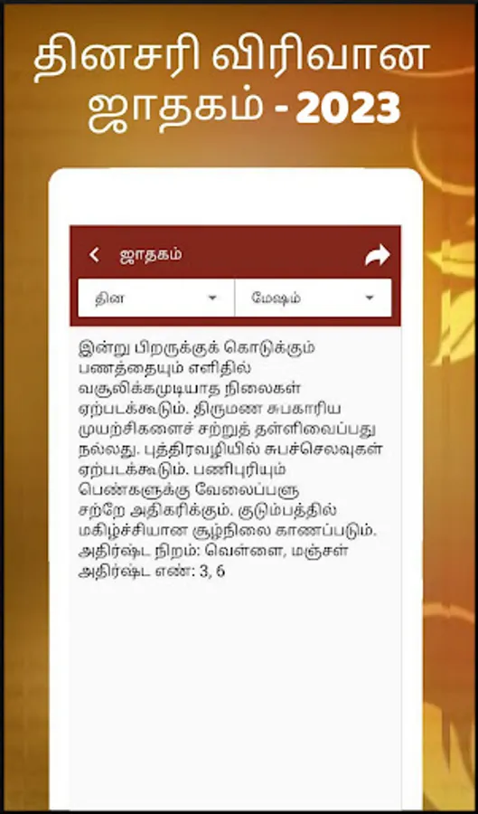 ● Tamil Astrology: Contains tamil calendar rasi palangal 2023 in daily basis