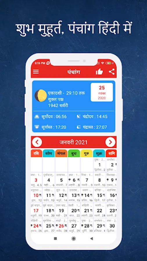 हिंदी कैलेंडर 2023 के लिए नवीनतम और नया कैलेंडर है। ऐप में हिंदी पंचांग 2023 का पूरा विवरण उपलब्ध है।