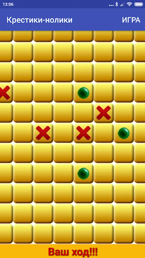 The game of tic-tac-toe, once popular among students of MEI: with an unlimited field, the victory goes to someone who can fill five cells in a row (diagonally, vertically or horizontally).