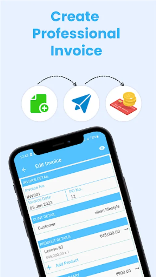 7. Beautiful UI design and Easy steps to create the invoice or billing.
