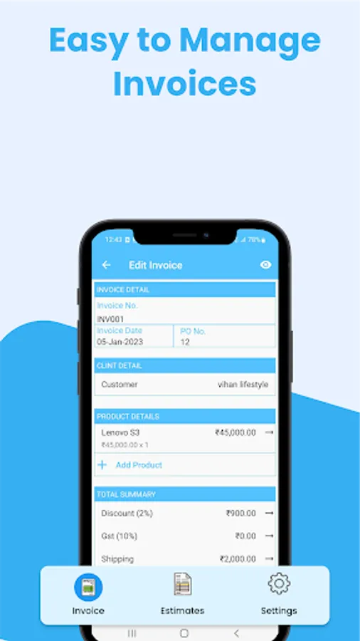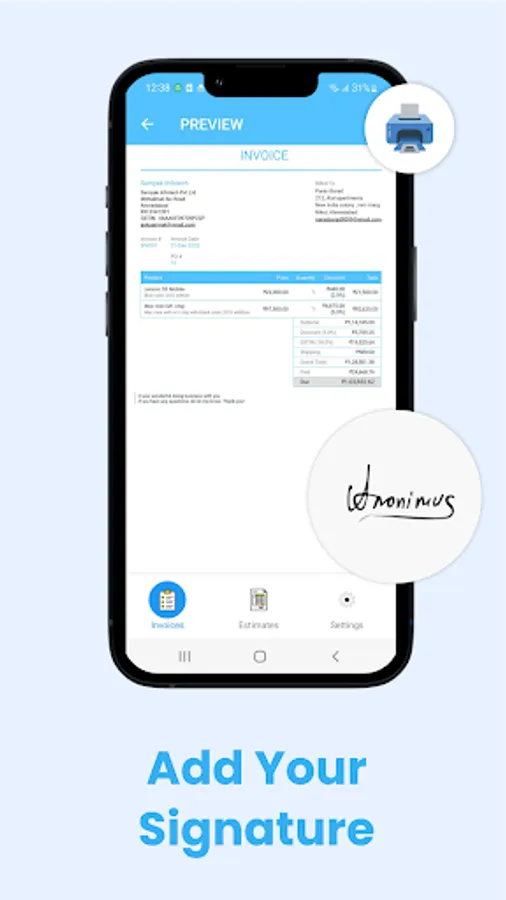 Samyak Infotech Pvt. Ltd built the Free invoice maker, Estimates app as a Free app. This SERVICE is provided by Samyak Infotech Pvt Ltd. at no cost and is intended for use as is.
