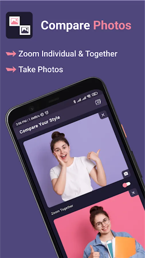 Compare Photos - Image Picture is the best app to compare your fashion tools like Goggles, Tshirts or any clothing photos in real-time. It is easy to use and helps you to select your favorite item.