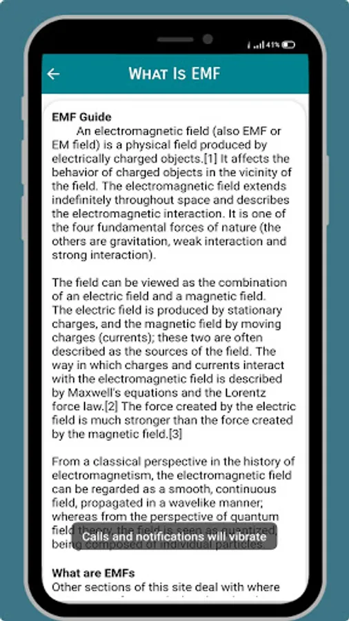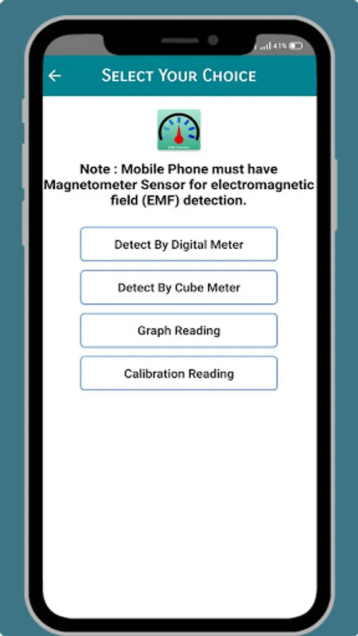 Emf detector and emf meter is an Android app. this emf detectors detect emf values using your mobile magnetic sensor. This app will show graph value and very attractive UI for detecting emf. emf meter showing you the true accurate and unchangeable values of the magnetic field strength around your phone. emf finder the accuracy of magnetic field value depend on magnetic sensor of your android phone. Electromagnetic Field Finder and True EMF Detector does not change or modify the readings received from your phone hardware in any form.