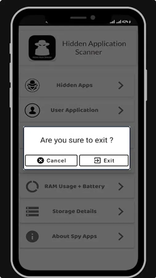 Spy Apps detector free Scanning tool that helps to identify malicious apps that have been granted device administrator privileges and are hidden from view. detect spy apps install in your mobile which is hidden apps. The hidden, unfortunately, also has its share of disadvantages. For example, it can consume a remarkable amount of internal memory and therefore exhaust the space reserved for new applications or files.