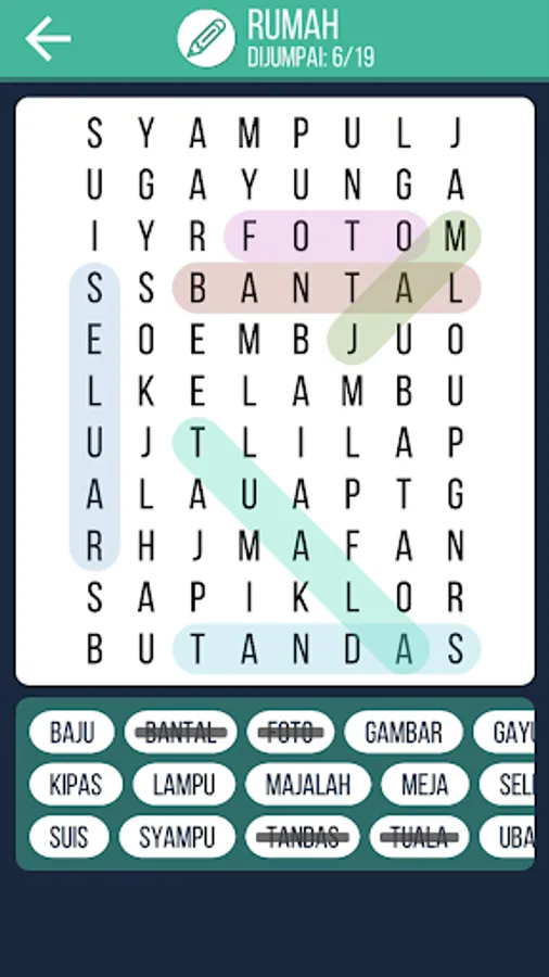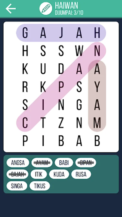 🔍 Cari Kata: cari perkataan tersembunyi bahasa Malaysia, mempunyai pelbagai kategori untuk anda pilih.