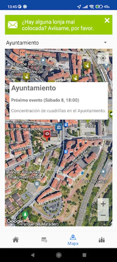 If you click on a square / park, it tells you the events that will take place in that place.