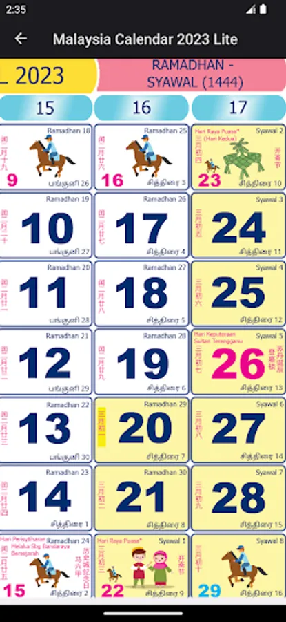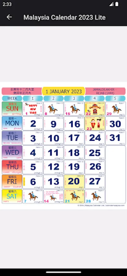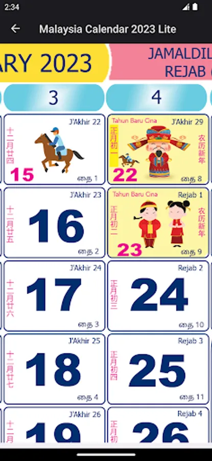 This application is a Malaysia calendar 2023 / 2022 made for Malaysian. It is similar to the popular racing horse calendar Malaysia, where it comprises the date of Chinese lunar calendar, Islamic calendar (Hijri calendar), Tamil dates, and various festival celebrated by Malaysian.