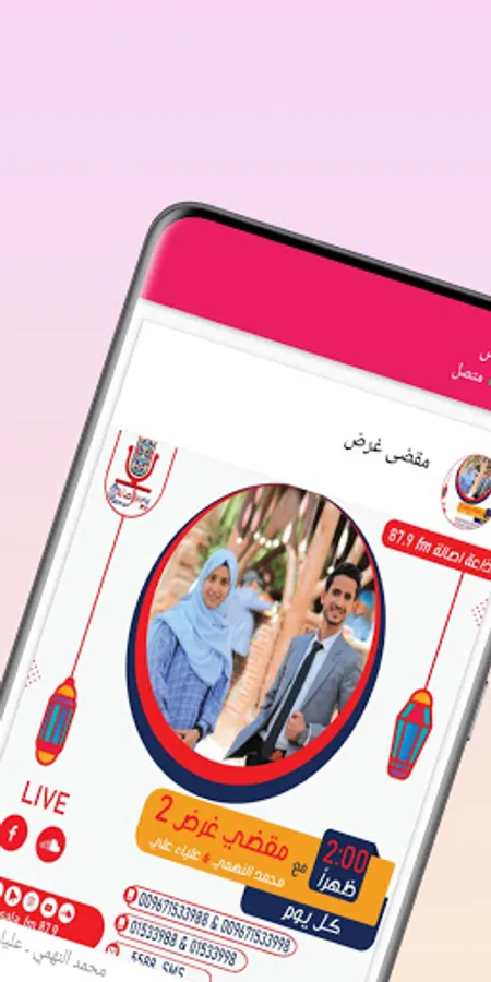 ✓ The user can, through the Hudhud FM application, follow the live broadcast via the Internet at any time and from anywhere.