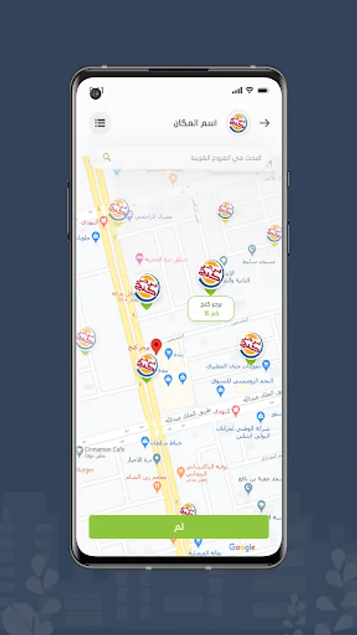The application determines for you through the map how far the store is from you in terms of distance and time.