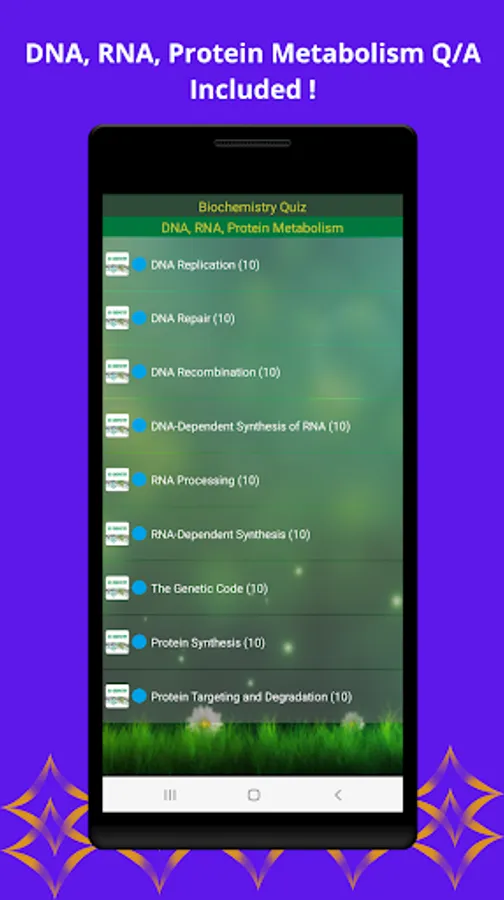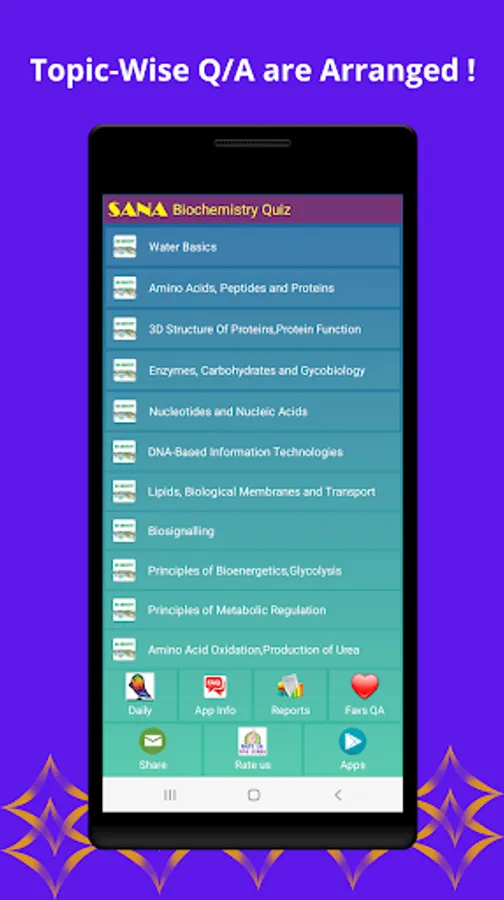 Biochemistry Quiz apps is an innovative concept from Sana Edutech that provides learning materials on Android app in a fast and nice user-interface.