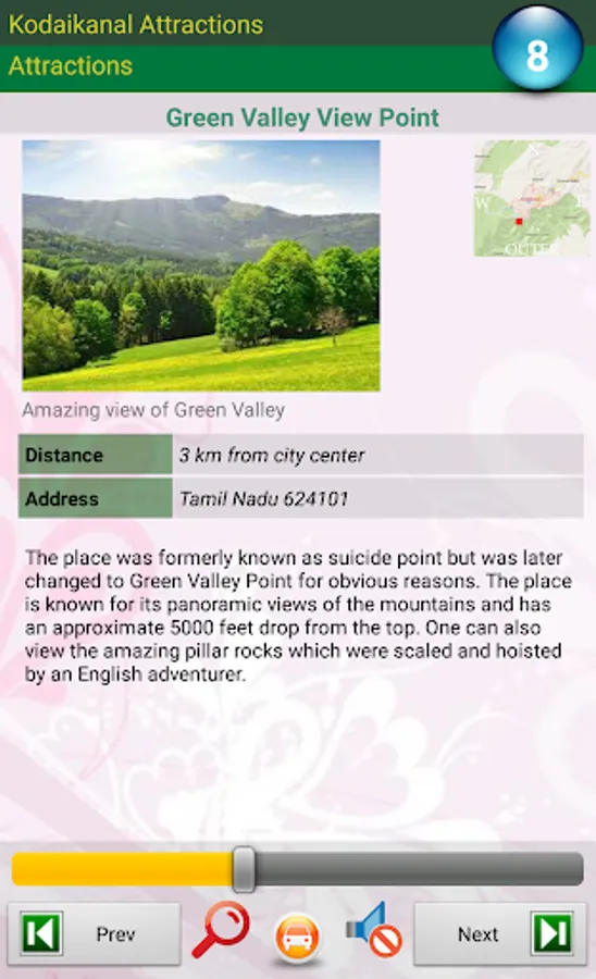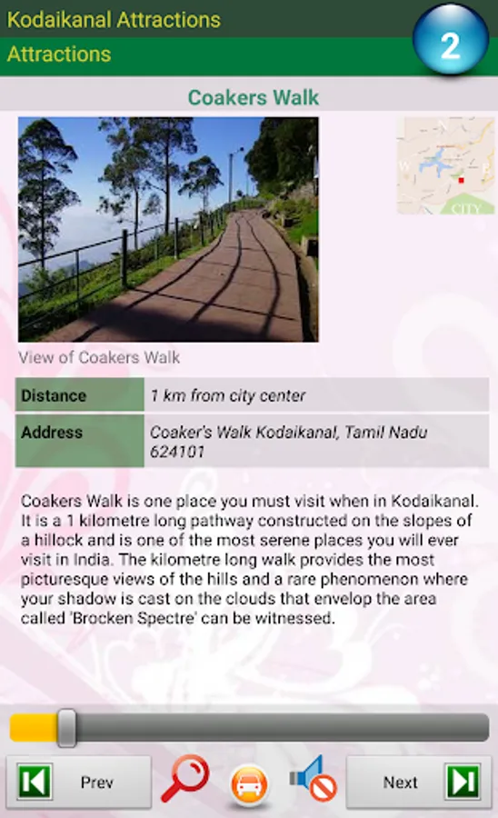 App that presents you the details of important tourist places, Kodaikanal travel attractions, Malls, Activities that you can happily do in a day at Kodaikanal, Tamilnadu,, India.