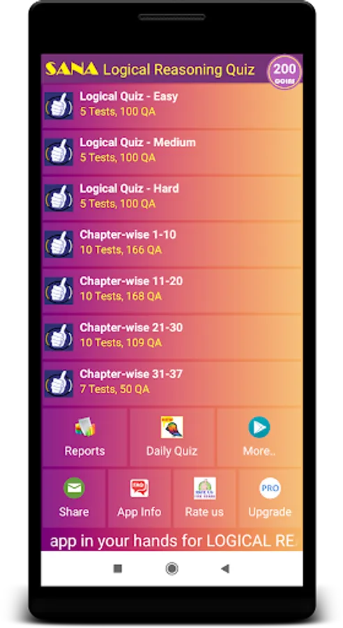 People appearing for Interviews or Exams related to Management entrance, Bank jobs, State civil services or Government jobs could use this app to self evaluate as well learn fast and improve their logical thinking.