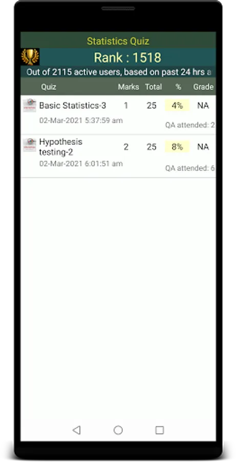 Statistics Quiz apps is an innovative concept from Sana Edutech that provides learning materials on Android app in a fast and nice user-interface.
