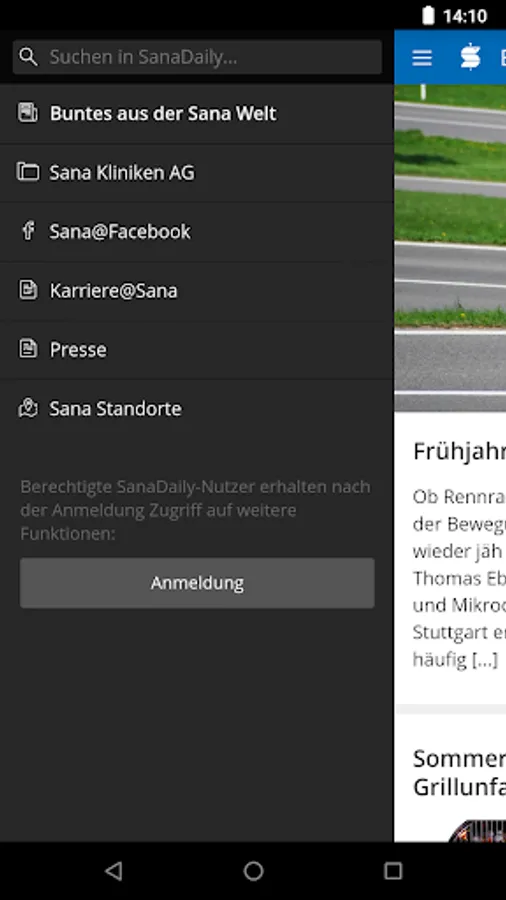 In the SanaDaily app you will receive the latest company news from Sana Kliniken AG. It offers individually tailored information: location-based news channels, event offers and team communication.