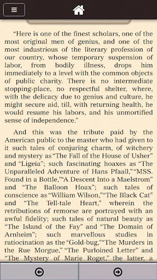 The application contains all Edgar Allan Poe books. “Edgar Allan Poe All Books” application has the following books.
