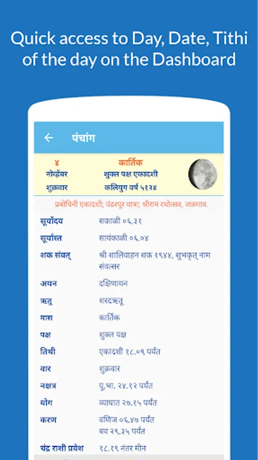 √ Quickly access Day, Date, Tithi and feature of the day on the dashboard !