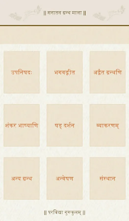 The application is developed to help students and teachers to get instant access to the vast collection of Shastras. The collection includes Mimamsa-Vedanta, Sankhya-Yoga, Nyaya-Vaisheshika Darshana Shastras; Vyakarana - Laghu Siddhanta Kaumudi, Panini Ashtadhyayi, Panini Dhatu Pata, Panini Shiksha, Amara Kosha, Vakya Padiyam; 10 Main Upanishads, Advaita Granthas, Shankaracharya's complete works are some of the main collections.