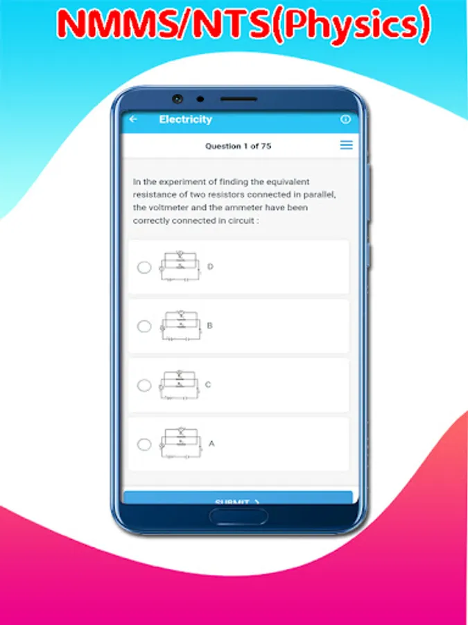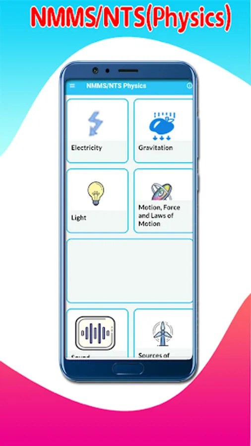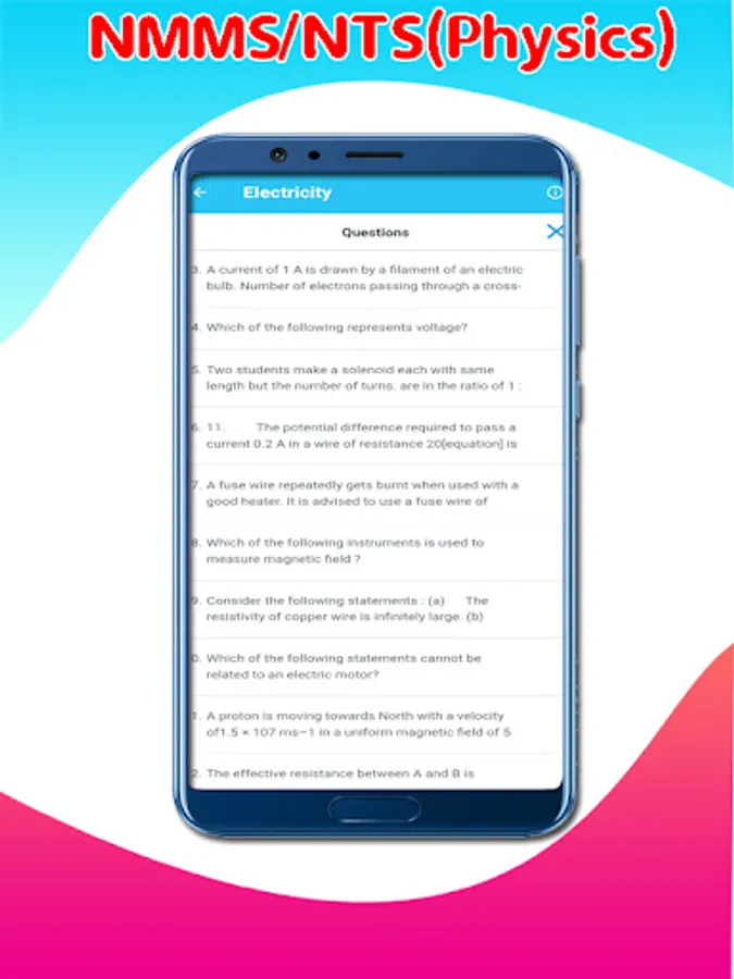 NMMS / NTS (Physics) App is designed for students preparing for NMMS/ NTS exam. this app is designed to cover all the syllabus required for competitive exam. this app is designed with very simple and beautiful interface .this app is designed to be offline and it is definitely useful for students who are preparing for NMMS / NTS Examination.