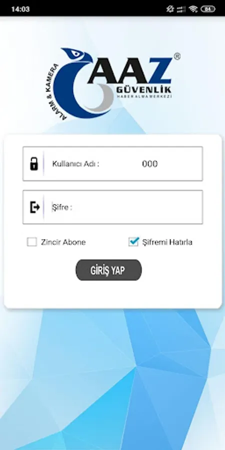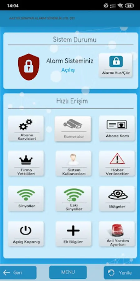 AAZ Security customers, send alarm signals to the alarm center via panels, the application will follow. With this application, if the alarm system has been installed and can be seen in the center of the signal sent to the last 30.