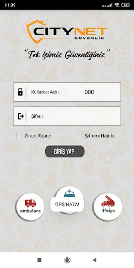 It is the application where Citynet Security Customers will send POLICE, AMBULANCE and FIRE SHIP calls to the alarm control center via Android phones. The distress call sent with this application is sent to the alarm center with the coordinate you are in. The alarm control center operators will direct the Security forces, Health team or Fire Brigade according to the coordinate address you want, according to the call for help you want. Note: This app requires a paid subscription.