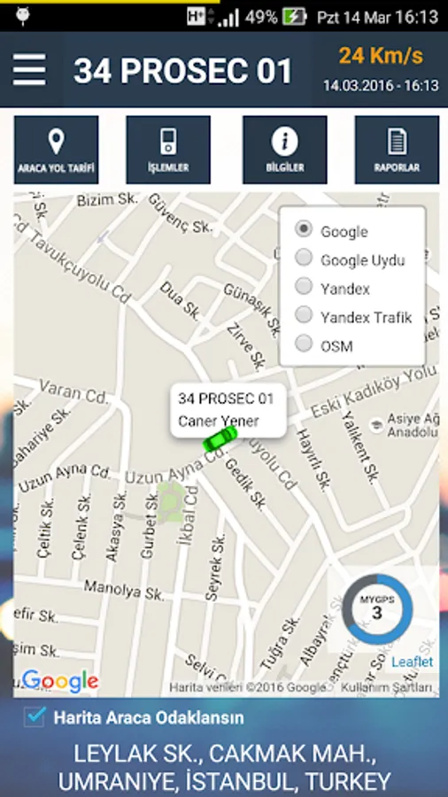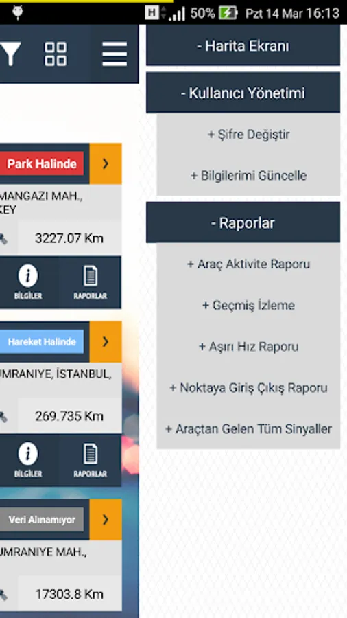With this application, the location of your vehicles, their daily activity reports, while cutting relay contact connected to the ignition lock can process, you can define vehicle driver.
