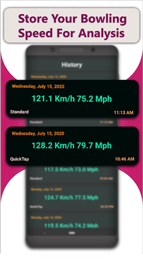 It will store your bowling speed in the local database. You can access all of your previously calculated speeds in the performance section. Try breaking your previously recorded speed it will help you to increase your bowling speed