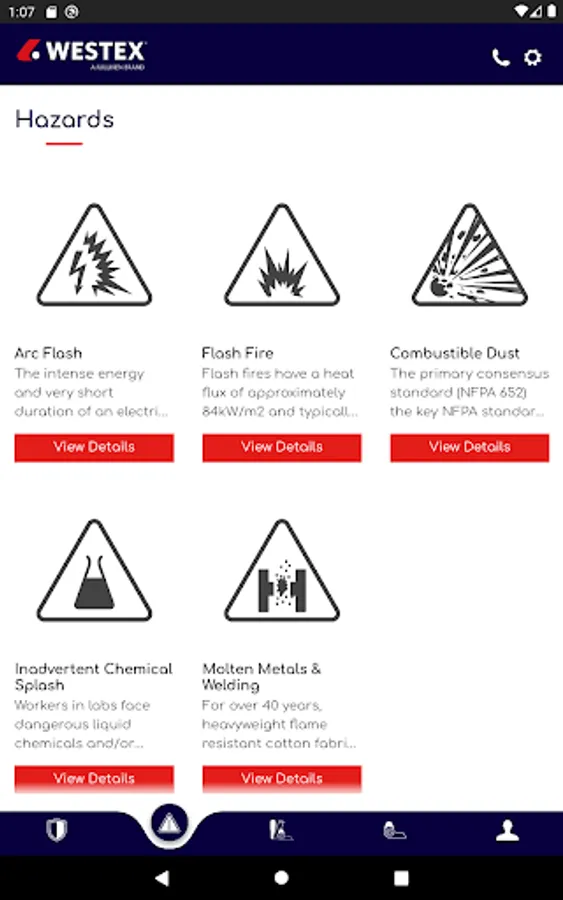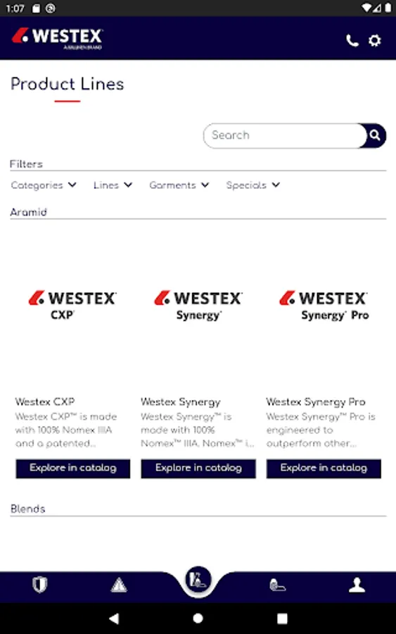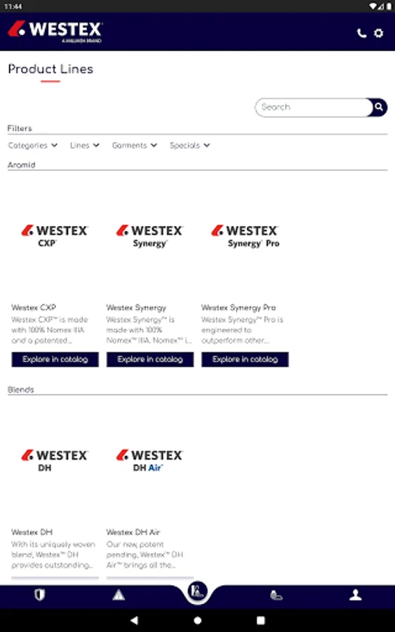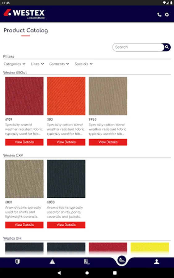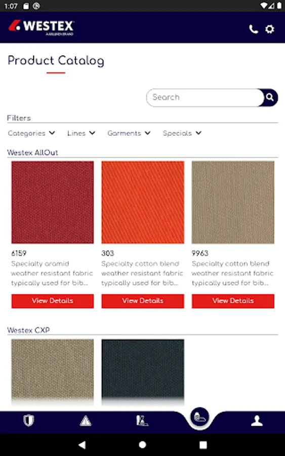 Mobile application selection guide for the Westex product line. Includes sample ordering, product features and demonstrations, and uniform creation.