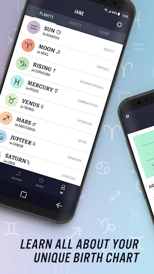 Get detailed information on your astrological placements and planetary profile.Features: