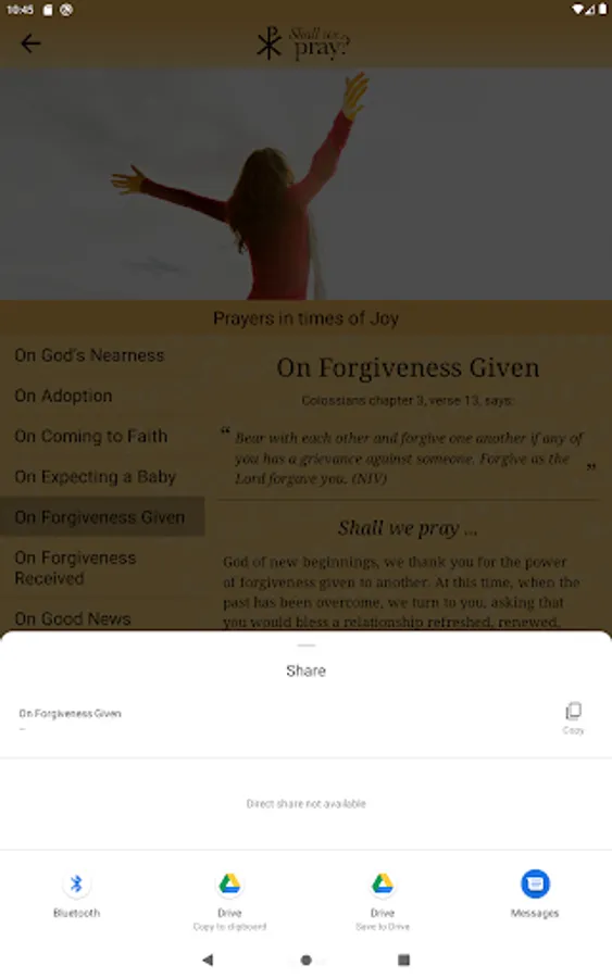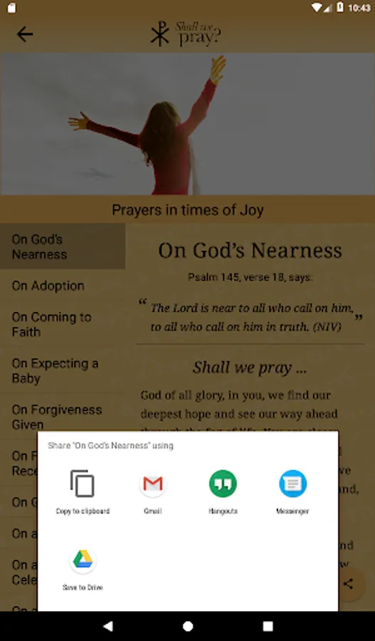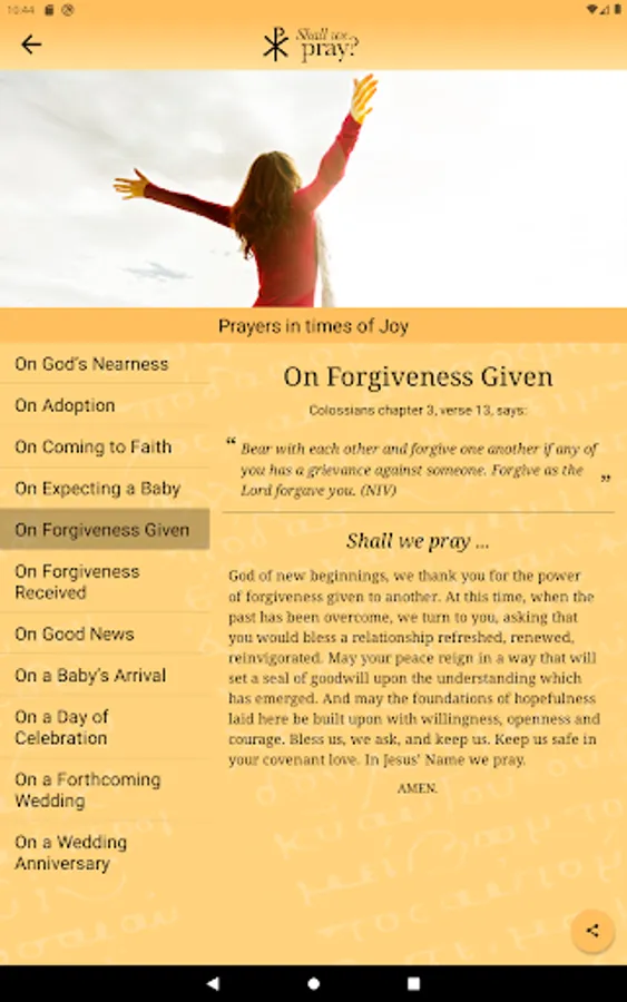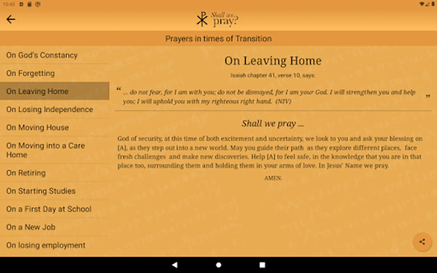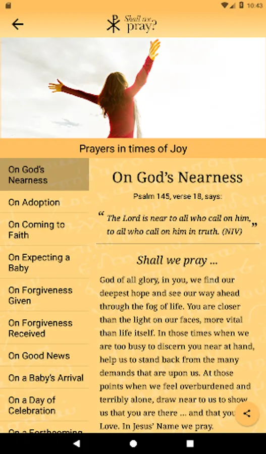 The more-than-fifty prayers provided here are split into five groupings: joy, transition, caring, emotion, and crisis. Each set concludes with one focusing on a particular aspect of God’s loving nature.