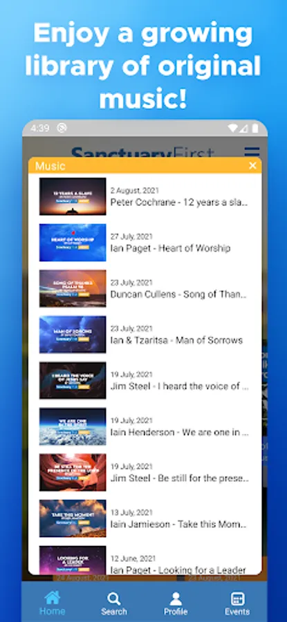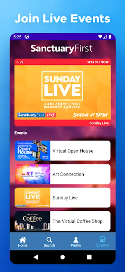 - Join live events like our worship services and music gigs, and replay after
