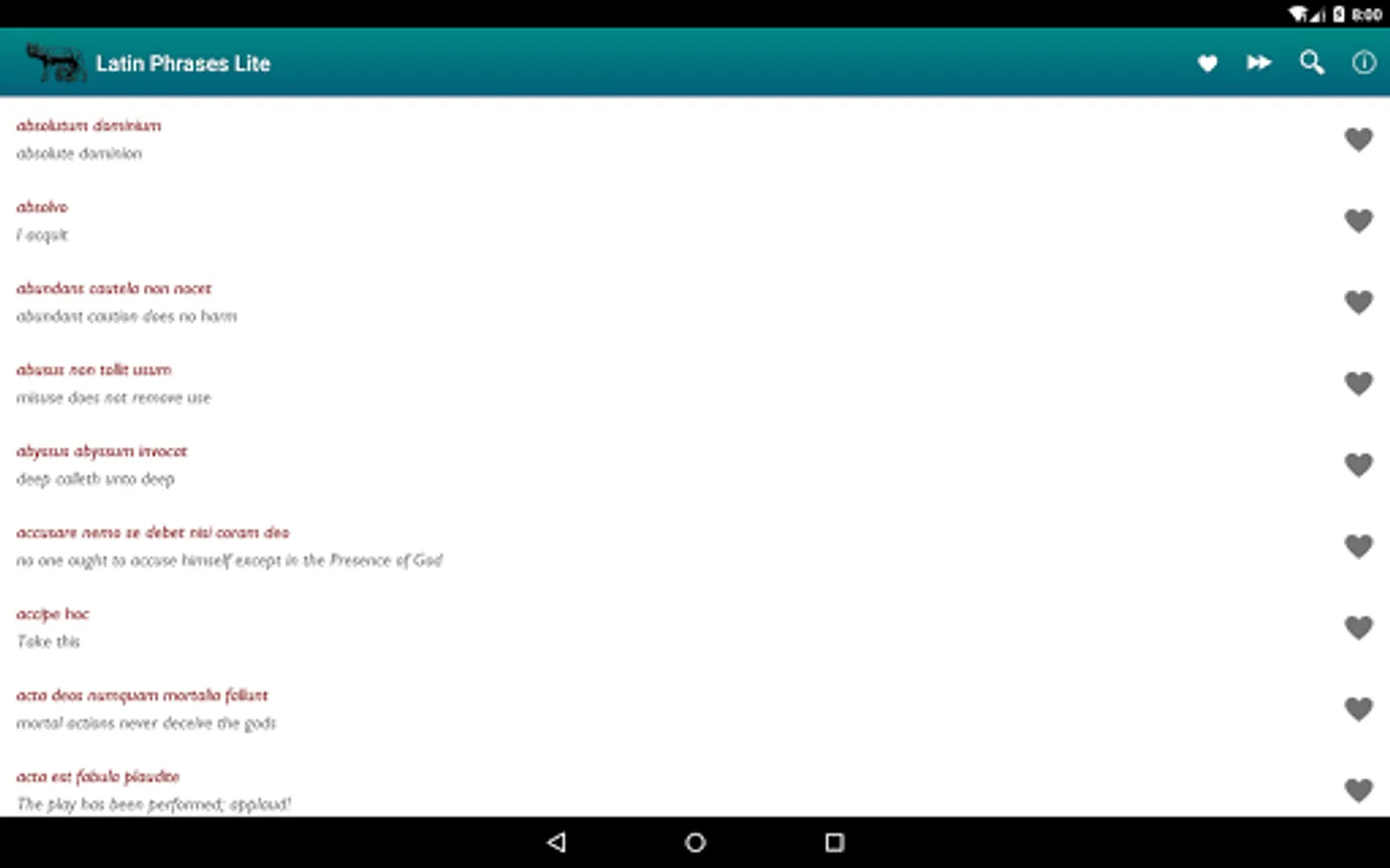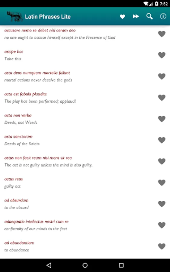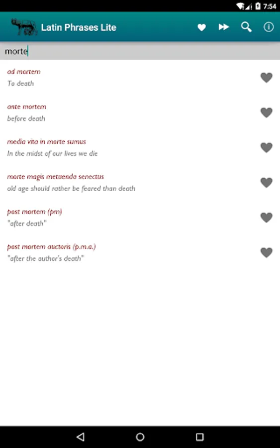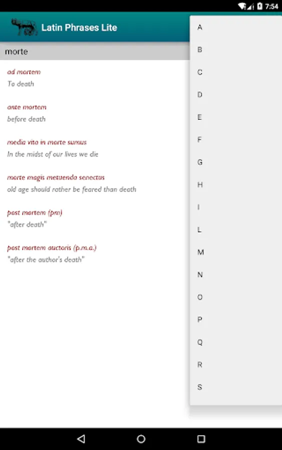 - fast search in Latin phrases and English translations.