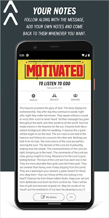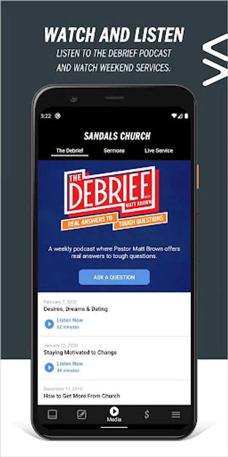 Follow along during sermons, add your own notes and keep them with you. Listen to the debrief or watch past sermons.