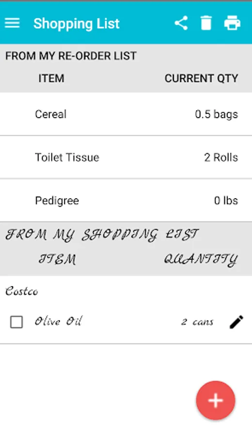 * Ivere's shopping lists will let you add items freestyle in addition to the auto-populate list from your PantryMan.