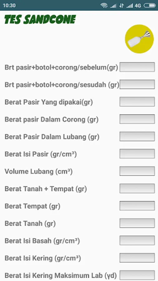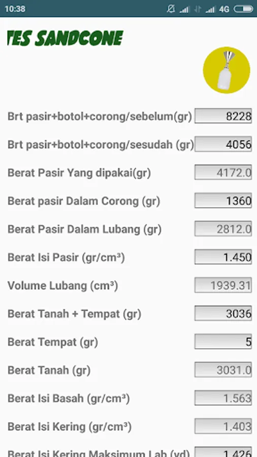 iSandcone is an application to simplify the calculation of sandcone test results in obtaining soil and aggregate density figures in the field.