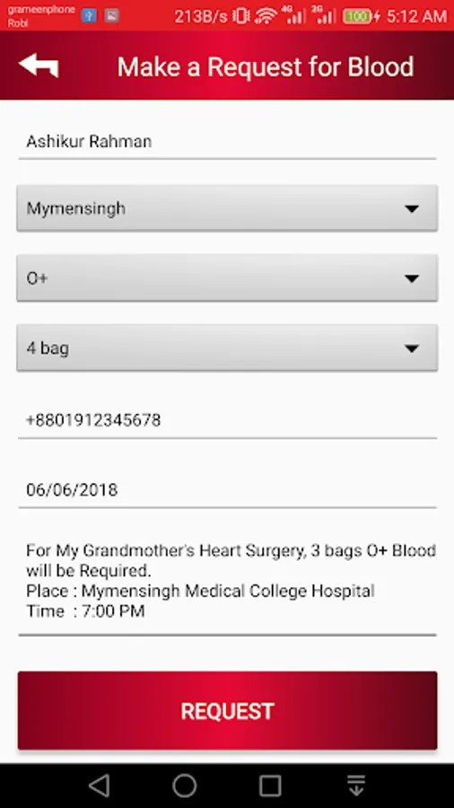 ✔ Post blood donation request in app to nearby donors ( BloodMe ).