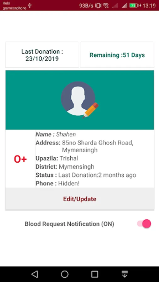 ✔ Get latest update for blood request (blood bank).