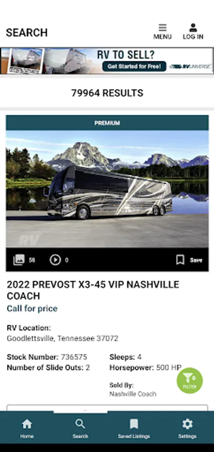 - Tap to view any listing on RVUniverse.com with your mobile browser