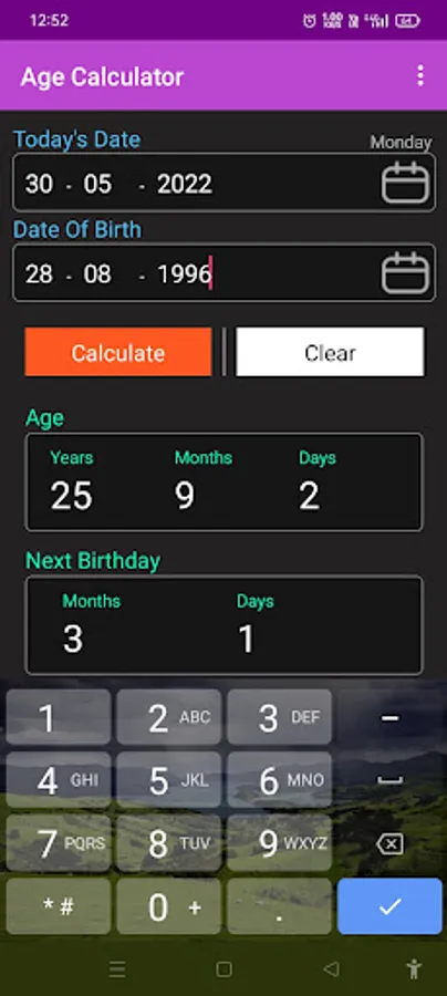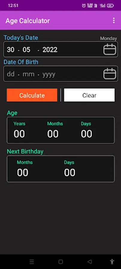 • There is no need of typing today's date in *Age Calculator*, it automatically sets today's date.