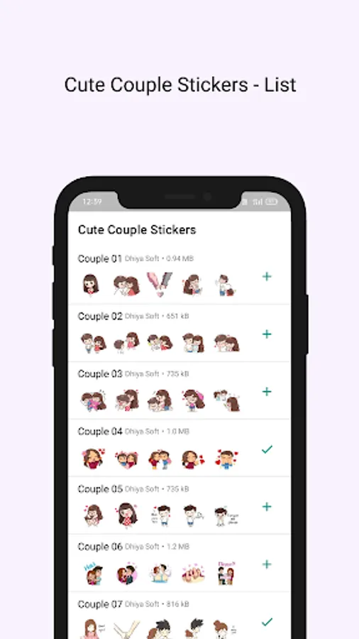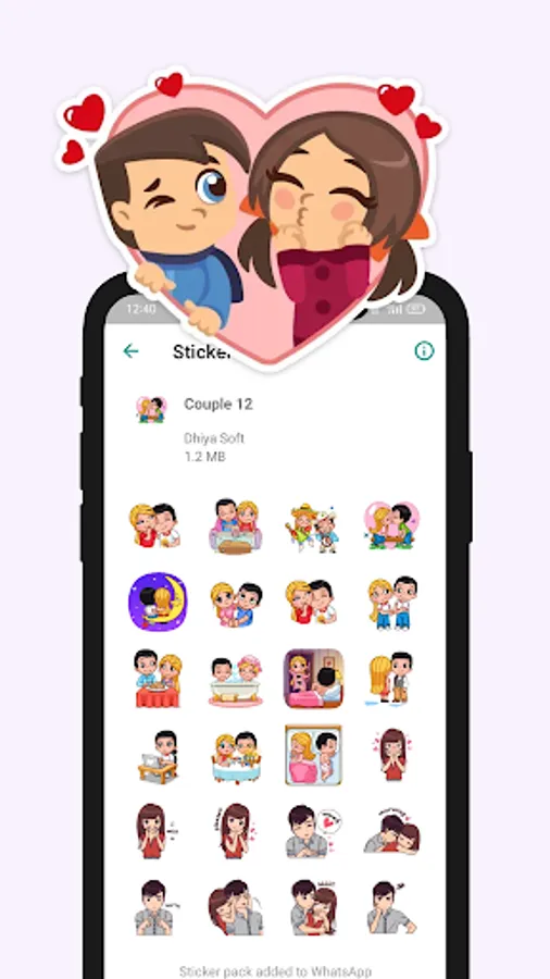 ✅ Open the app to see the list of cute couple stickers packs.