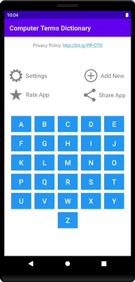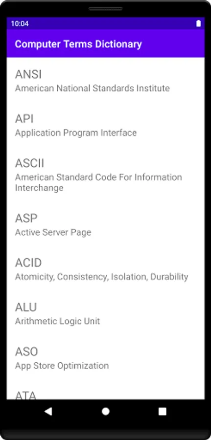 Computer Terms Dictionary (CTD) is a liteweight dictionary app that contains more than 200 Computer Terms arranged in alphabetic order. Features include: