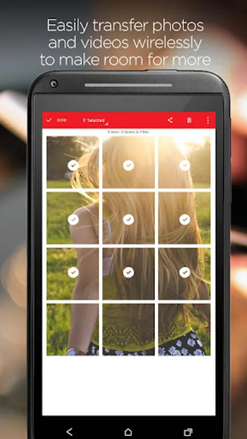• Transfer photos, videos and large files from your phone or tablet to the drive and free up space
