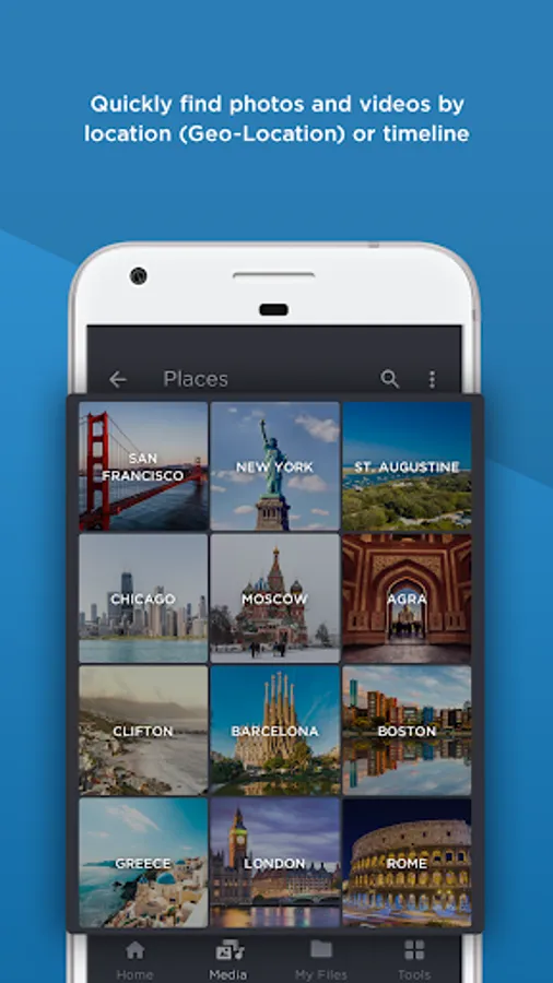 Save time looking for files with the intuitive user interface. Search for photos by keyword or utilizing geotagging or timeline searches.