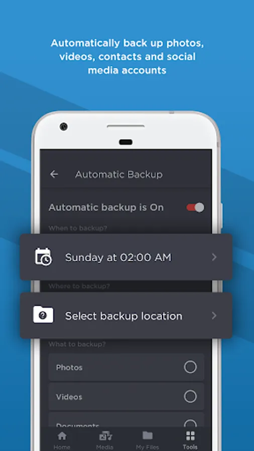 Use SanDisk Memory Zone app to automatically back up your photos, videos, and/or contacts.