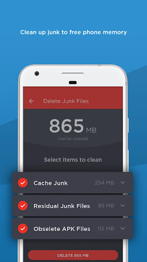 Clean your unwanted content in one-click with the “Delete Junk Files” tool. SanDisk Memory Zone can also clean up certain chat apps** to free up more storage instantly. Additionally, erase and uninstall your unused apps with the “Manage Apps” tool.