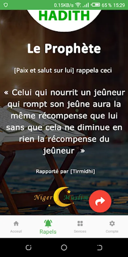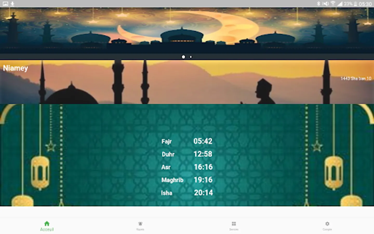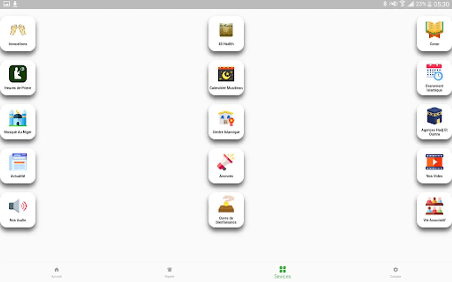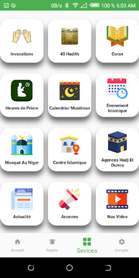 Niger Muslim is a Nigerien Islamic App that offers prayer times for Niger and beyond with constant reminders about Islam. It also ofers additional services such as the reading of the Holy Quran as well as hadith and even video and audio sermons.